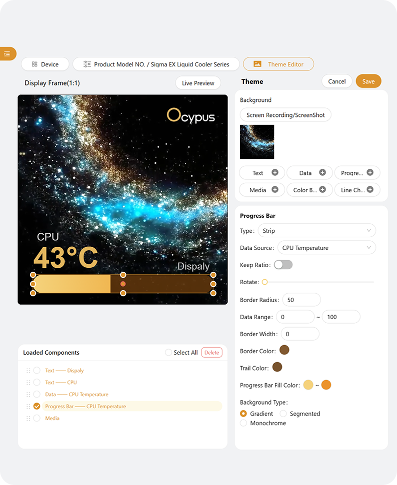 Paired with the all-new Ocypus Display, reinvent the digital display experience, customize display at will, express your unique style without limits.